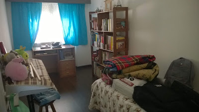O espaço vazio ao lado da estante estava, antes da foto, cheio com tralha que decidi - finalmente - deitar fora. Ao olhar para o quarto sentia que não estava a aproveitar o espaço da melhor forma e estava constantemente desarrumado. Então, de manhã, pusemos mãos à obra e mudámos praticamente tudo de sítio!
